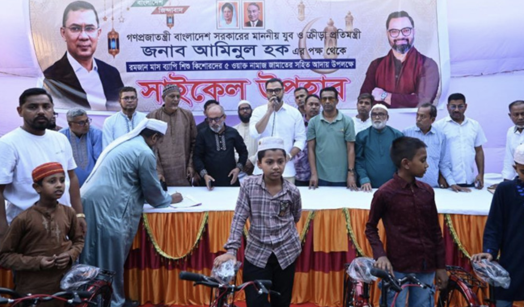 উদ্বোধনী অনুষ্ঠানে প্রতিমন্ত্রী আমিনুল হক বলেন, ‘আমি ঘোষণা দিয়েছিলাম, আমাদের এলাকার ১২ থেকে ১৪ বছর বয়সি যে শিশুরা পুরো রমজান মাসে মসজিদে এসে পাঁচ ওয়াক্ত নামাজ আদায় করবে, তাদের আমি উৎসাহিত করতে সাইকেল উপহার দেব। আজ সেই প্রতিশ্রুতির বাস্তবায়ন শুরু হলো।’ তিনি আরও বলেন, পুরস্কার বড় কথা নয়, মূল লক্ষ্য হলো শিশুদের মধ্যে নামাজের অভ্যাস গড়ে তোলা এবং তাদের সঠিক পথে পরিচালিত করা। আমরা চাই আমাদের পরবর্তী প্রজন্ম নৈতিকতা ও ধর্মীয় মূল্যবোধ নিয়ে বেড়ে উঠুক। আল্লাহর সন্তুষ্টির জন্য তারা যেন এই নামাজের অভ্যাস সারাজীবন ধরে রাখতে পারে, সেজন্যই আমার এই ক্ষুদ্র প্রচেষ্টা।