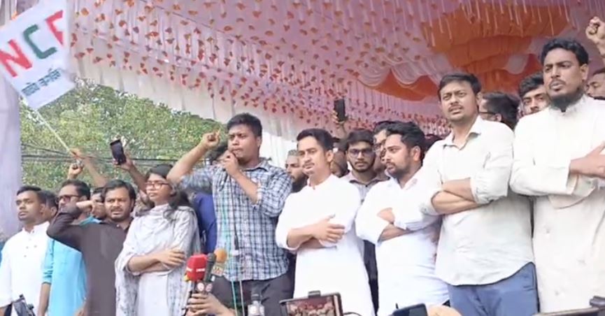 সেখানে প্রথমে মাইক হাতে কথা বলেন দলের উত্তরাঞ্চলের মুখ্য সংগঠক সারজিস আলম। এরপর মাইক হাতে নিয়ে টানা স্লোগান দিয়ে সমাবেশ স্থল মুখর করে রাখেন এনসিপির দক্ষিণাঞ্চলের মুখ্য সংগঠক হাসনাত আব্দুল্লাহ।
