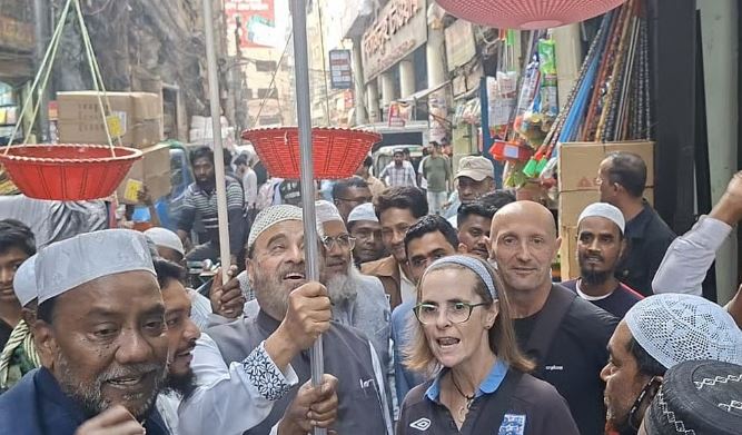 জামায়াত প্রার্থীর গণসংযোগে স্লোগান দিলেন দুই বিদেশি