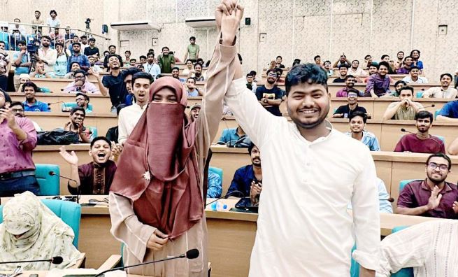 বিশ্ববিদ্যালয় কেন্দ্রীয় ছাত্র সংসদ (ডাকসু) নির্বাচনে ইতিহাস গড়েছেন ছাত্রশিবির সমর্থিত ‘ঐক্যবদ্ধ শিক্ষার্থী জোট’ প্যানেলের দুই প্রার্থী। প্রথমবারের মতো এক দম্পতি