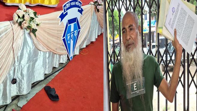 এবার বগুড়ায় দুর্নীতি দমন কমিশনের (দুদক) গণশুনানিতে নিজের অভিযোগ গ্রহণ না করায় সংস্থার চেয়ারম্যানের দিকে জুতা নিক্ষেপ করেছেন এক ব্যক্তি।
