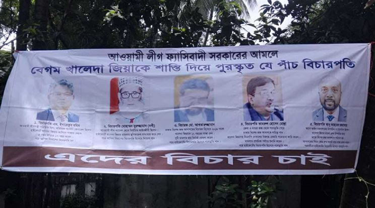 রাতে প্রধান বিচারপতির বাসভবনের সামনে ৫ বিচারপতির ছবি সম্বলিত ব্যানার
