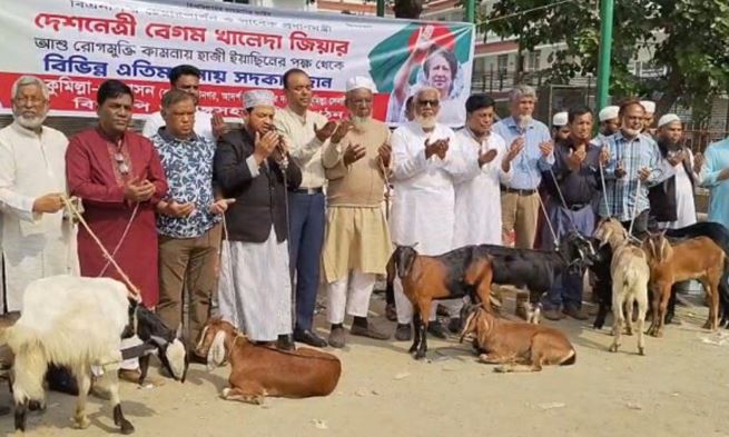 এবার বিএনপির চেয়ারপারসন বেগম খালেদা জিয়ার আশু রোগমুক্তির কামনায় কুমিল্লা নগরীর বিভিন্ন এতিমখানায় বুধবার সকালে ১৬টি খাসি সদকা দেওয়া হয়েছে